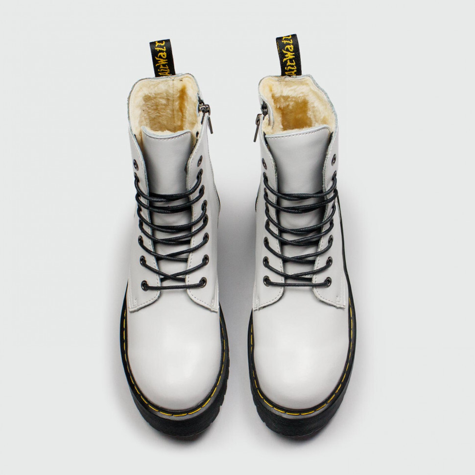 Ботинки Dr. Martens 1460 White / Black Winter с мехом, выполненные из иск. кожи. Модель отличается высоким силуэтом с застёжкой на молнию и толстой подошве, традиционной шнуровкой с металлическими люверсами и износостойкой подошвой с цепким протектором.