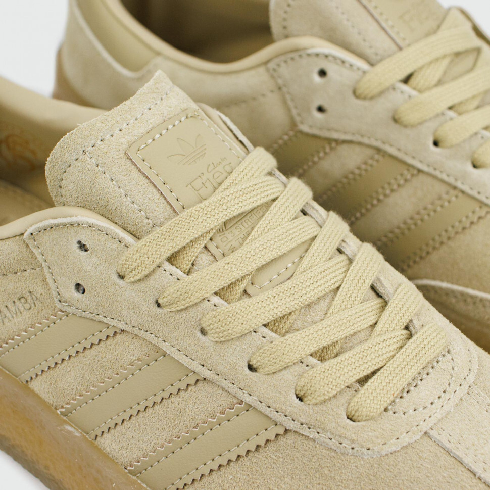 Пары имеют традиционный верх силуэта Samba с переосмысленным замшевым верхом от Clarks. Каждый из логотипов брендов выбит на язычке, а культовая креповая подошва Clarks завершает дизайн.