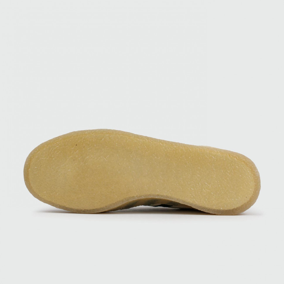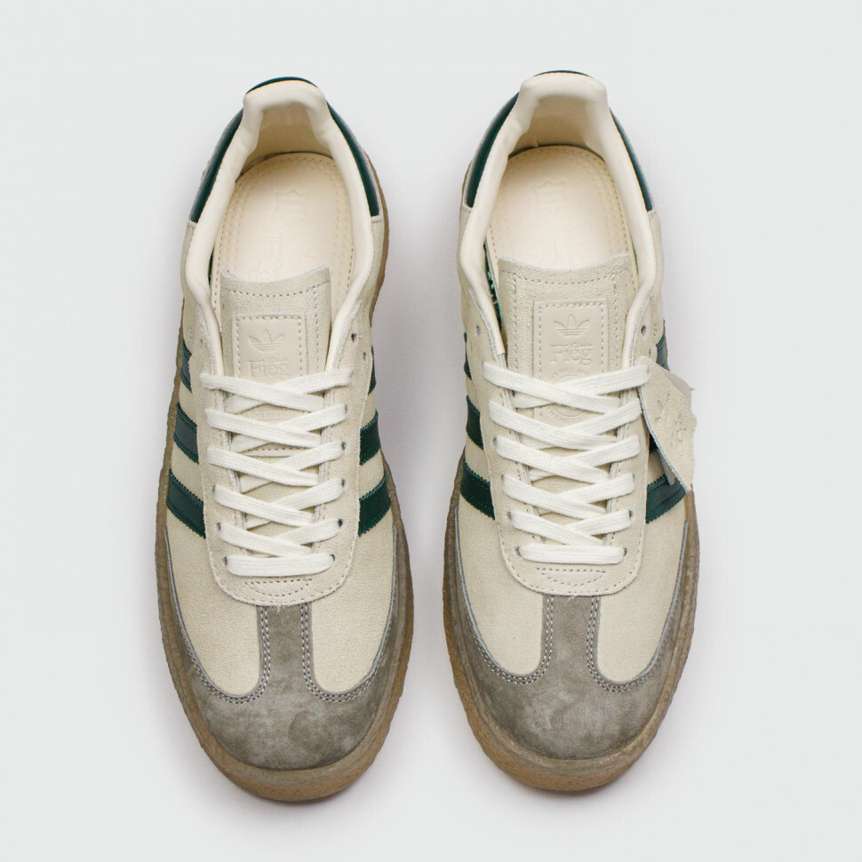 Пары имеют традиционный верх силуэта Samba с переосмысленным замшевым верхом от Clarks. Каждый из логотипов брендов выбит на язычке, а культовая креповая подошва Clarks завершает дизайн.