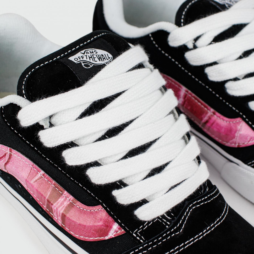 Розовый цвет полоски придает им свежий и элегантный вид, идеально подходящий для летнего сезона. Кеды Vans Knu Skool легко сочетаются с различными нарядами и стилями, от повседневной одежды до более формальных образов. Это отличный выбор для тех, кто ищет универсальную и стильную обувь для своего гардероба.