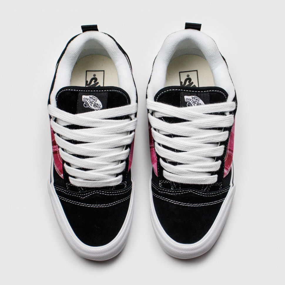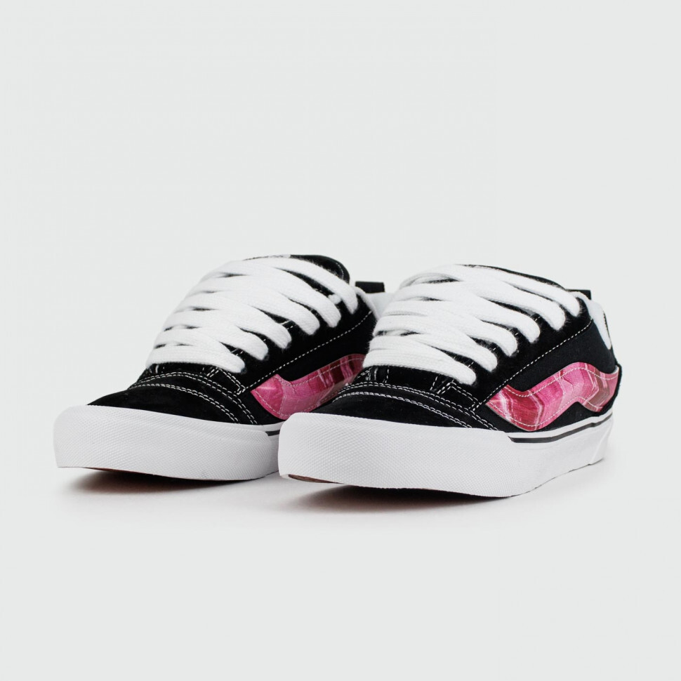 Розовый цвет полоски придает им свежий и элегантный вид, идеально подходящий для летнего сезона. Кеды Vans Knu Skool легко сочетаются с различными нарядами и стилями, от повседневной одежды до более формальных образов. Это отличный выбор для тех, кто ищет универсальную и стильную обувь для своего гардероба.