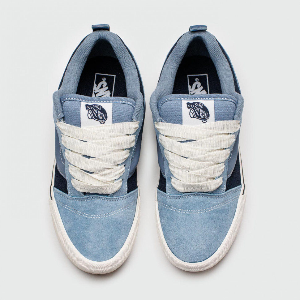 Голубой цвет придает им свежий и элегантный вид, идеально подходящий для летнего сезона. Кеды Vans Knu Skool легко сочетаются с различными нарядами и стилями, от повседневной одежды до более формальных образов. Это отличный выбор для тех, кто ищет универсальную и стильную обувь для своего гардероба.
