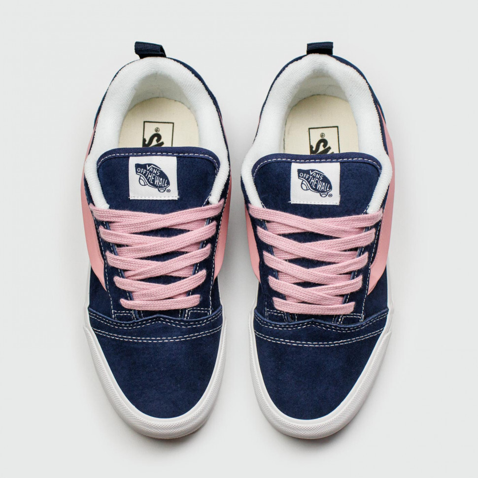 Кеды Vans Knu Skool Blue / White Pink Wmns это модные и стильные кеды. Их дизайн включает классическую силуэтку Vans с плоской подошвой и замшевым верхом.