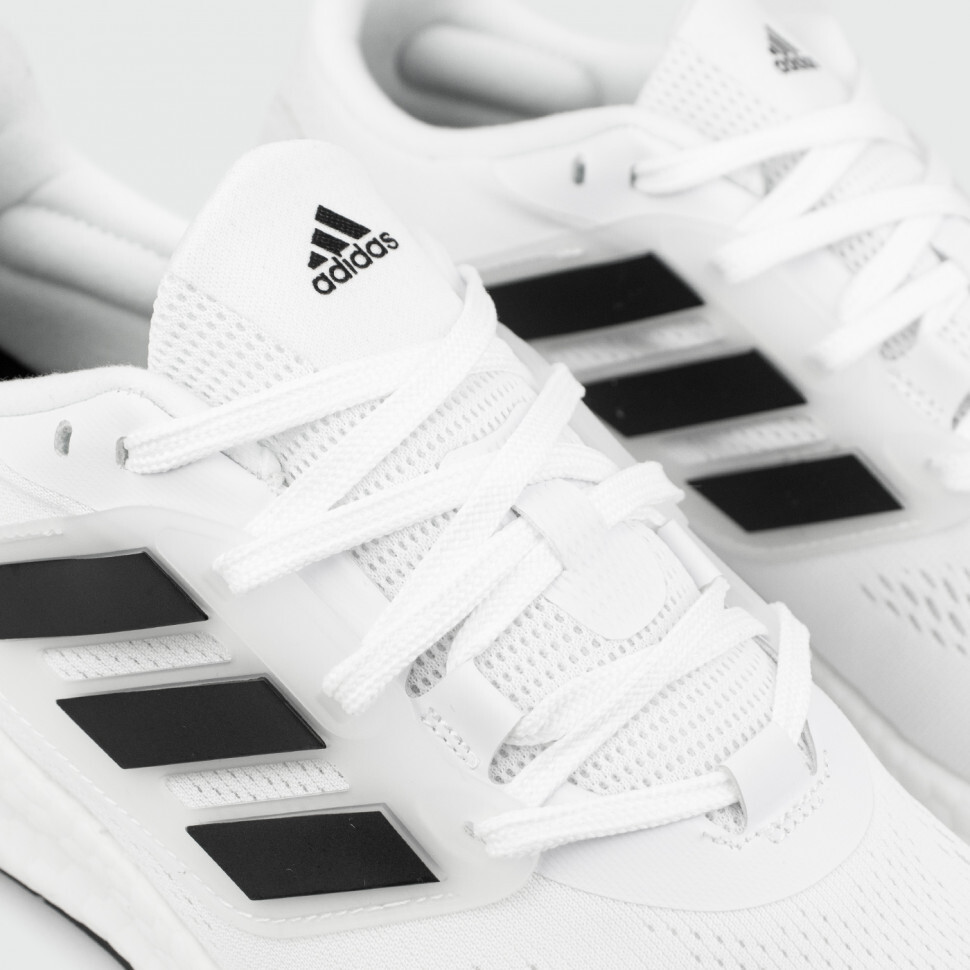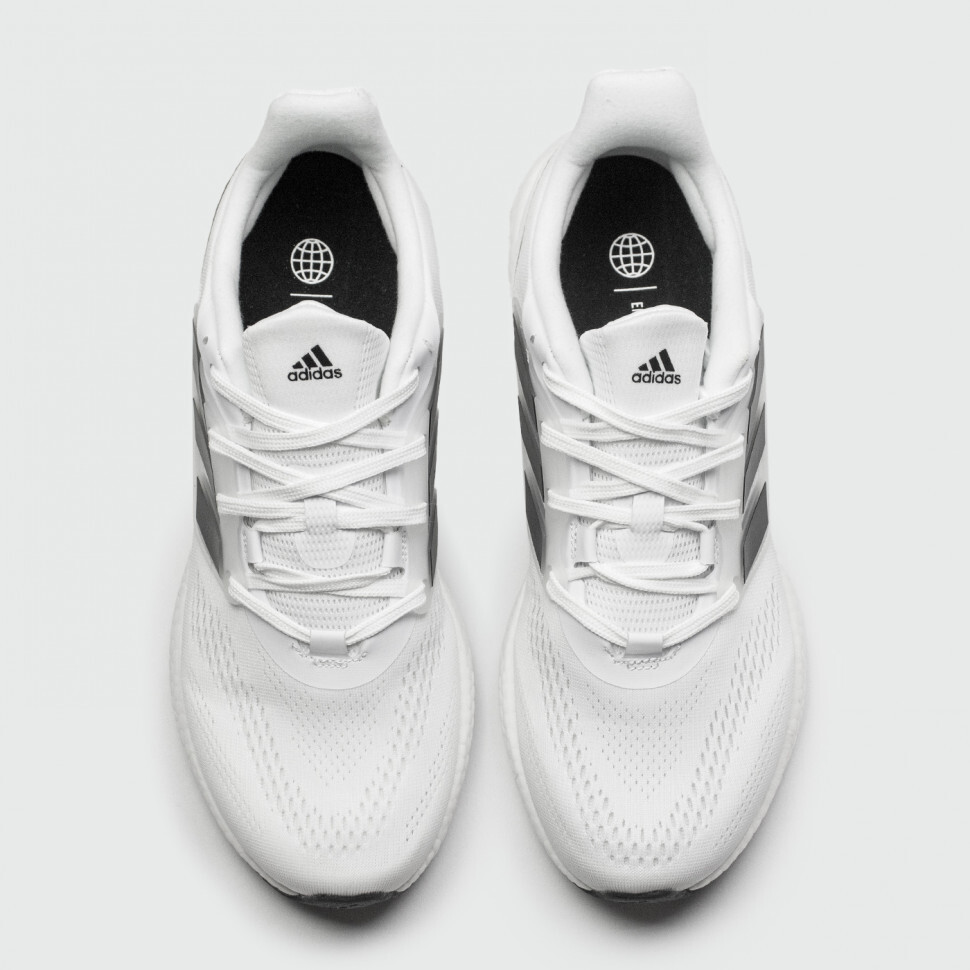 Для быстрых утренних миль и не только. Модель белого цвета. Эти беговые кроссовки adidas Pureboost настолько просты, что вы захотите носить их не только во время ежедневной пробежки. Благодаря отзывчивой технологии BOOST комфорт становится очевидным, как только ты их наденешь. Мягкий трикотажный верх и внешняя стойка на пятке фиксируют стопу, когда ты спускаешься с последнего холма.