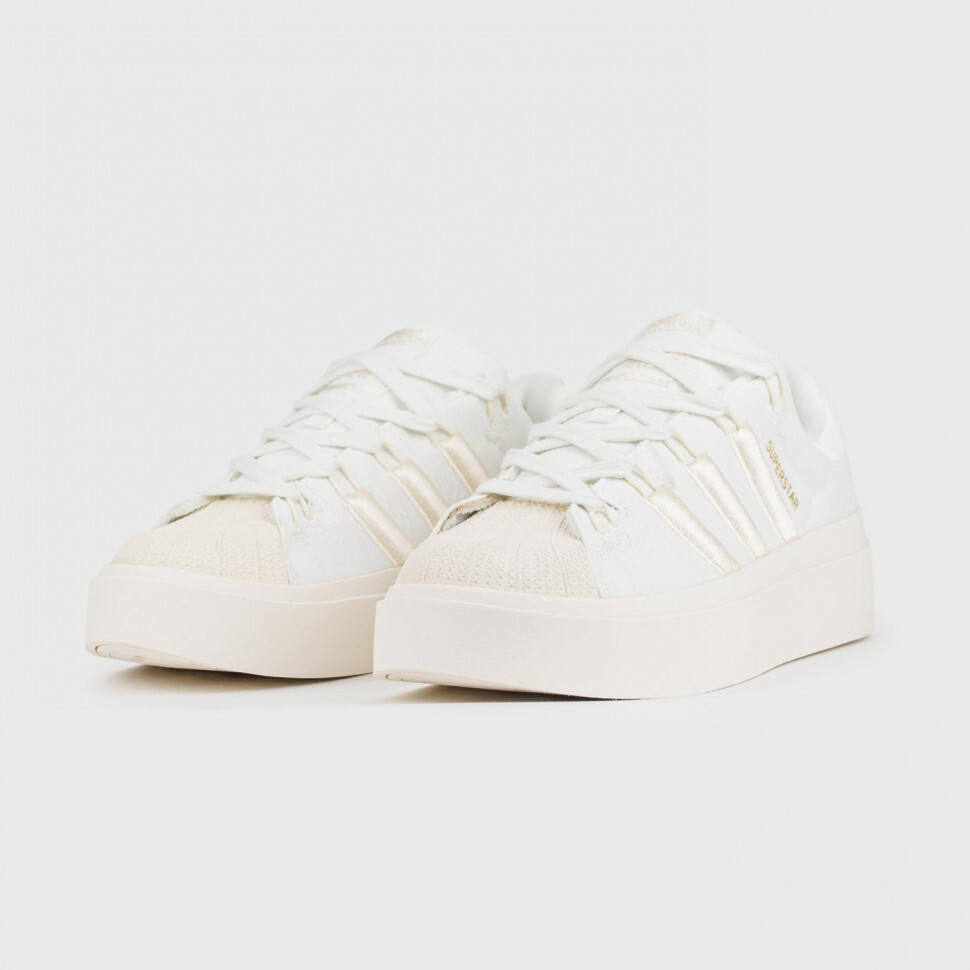 Кроссовки Adidas Superstar Bonega White Beige – подходят для повседневного использования. Верхняя часть кроссовок изготовлена из гладкой кожи с резиновым мыском-ракушкой. Классическая система шнуровки и низкий профиль плотно фиксируют стопу. Массивная подошва из EVA обеспечивает оптимальную амортизацию и возврат энергии. Завершают образ фирменные три полосы и маркировка «SUPERSTAR».