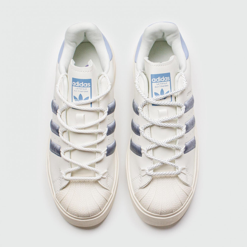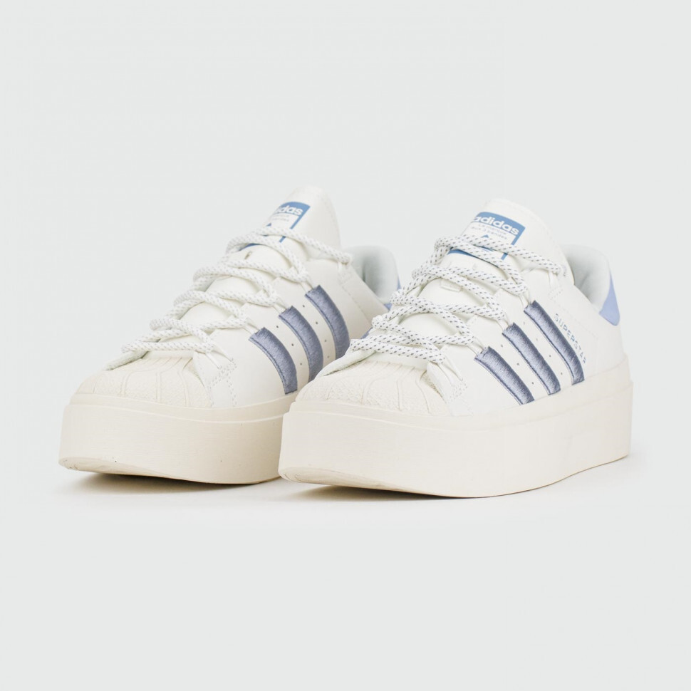 Кроссовки Adidas Superstar Bonega White Blue – подходят для повседневного использования. Верхняя часть кроссовок изготовлена из гладкой кожи с резиновым мыском-ракушкой. Классическая система шнуровки и низкий профиль плотно фиксируют стопу. Массивная подошва из EVA обеспечивает оптимальную амортизацию и возврат энергии. Завершают образ фирменные три полосы и маркировка «SUPERSTAR».