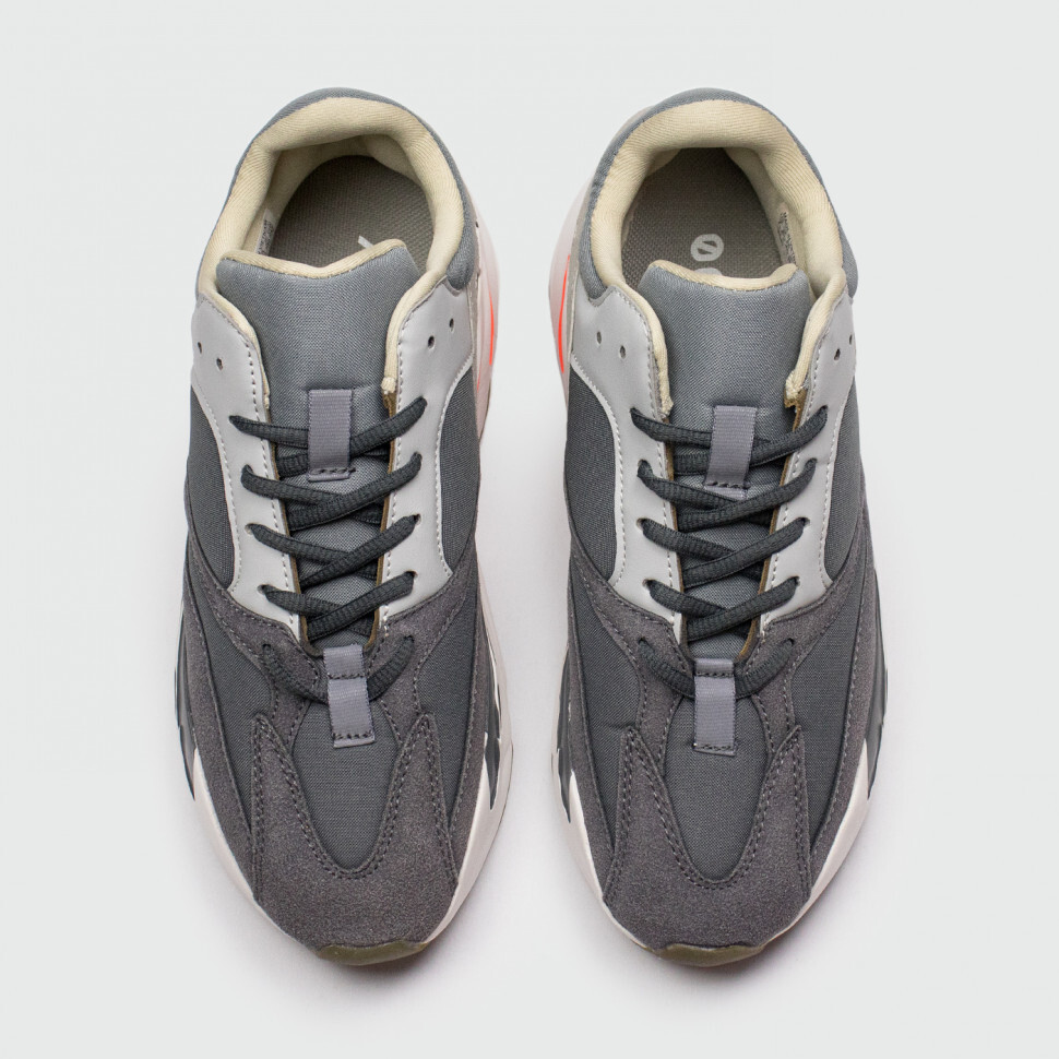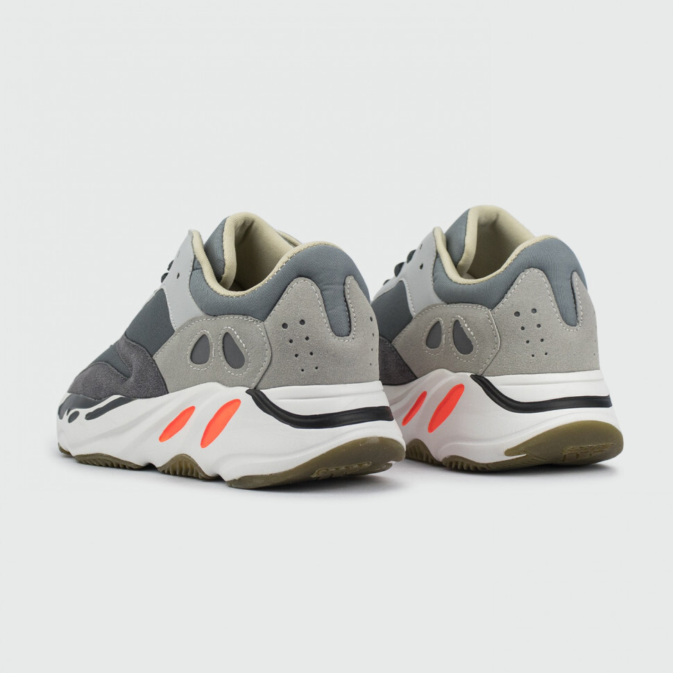 Верхняя часть Yeezy Boost 700 'Magnet' сочетает в себе неопрен, что отличает ее от предыдущих моделей 700-х, дизайнерскую замшу и кожаные(иск.) вставки в палитре серых градиентов.