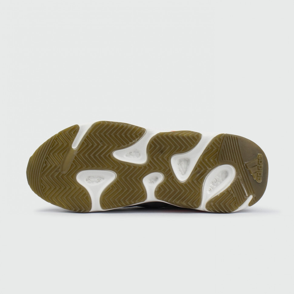 Поддержку и комфорт обеспечивает амортизационная подошва Boost, которая окрашена в белый оттенок с серыми и оранжевыми вставками.