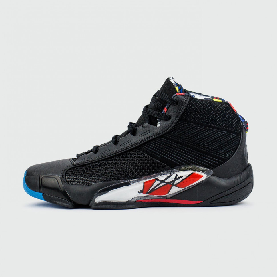 Мужские баскетбольные кроссовки. 38-я номерная флагманская модель бренда AIR JORDAN. Дизайн вдохновлён ретро-моделью AIR JORDAN VIII, в которых Майкл Джордан стал чемпионом NBA 3-й раз в карьере в сезоне 1992/1993 года.