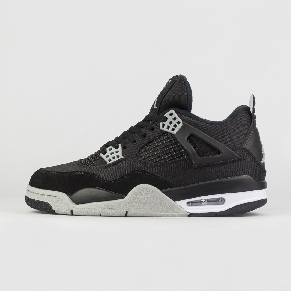 Air Jordan 4 Black / Grey Canvas - четвертые именные кроссовки великого баскетболиста NBA Майкла Джордана. Преимущества модели, это боковая поддержка щиколотки, Air Bag в пятке для повседневного комфорта, высокая износостойкость и конечно же всеми узнаваемый ретро силуэт кроссовок, который не выходит из моды. Верх модели выполнен из прочного канваса и текстиля.