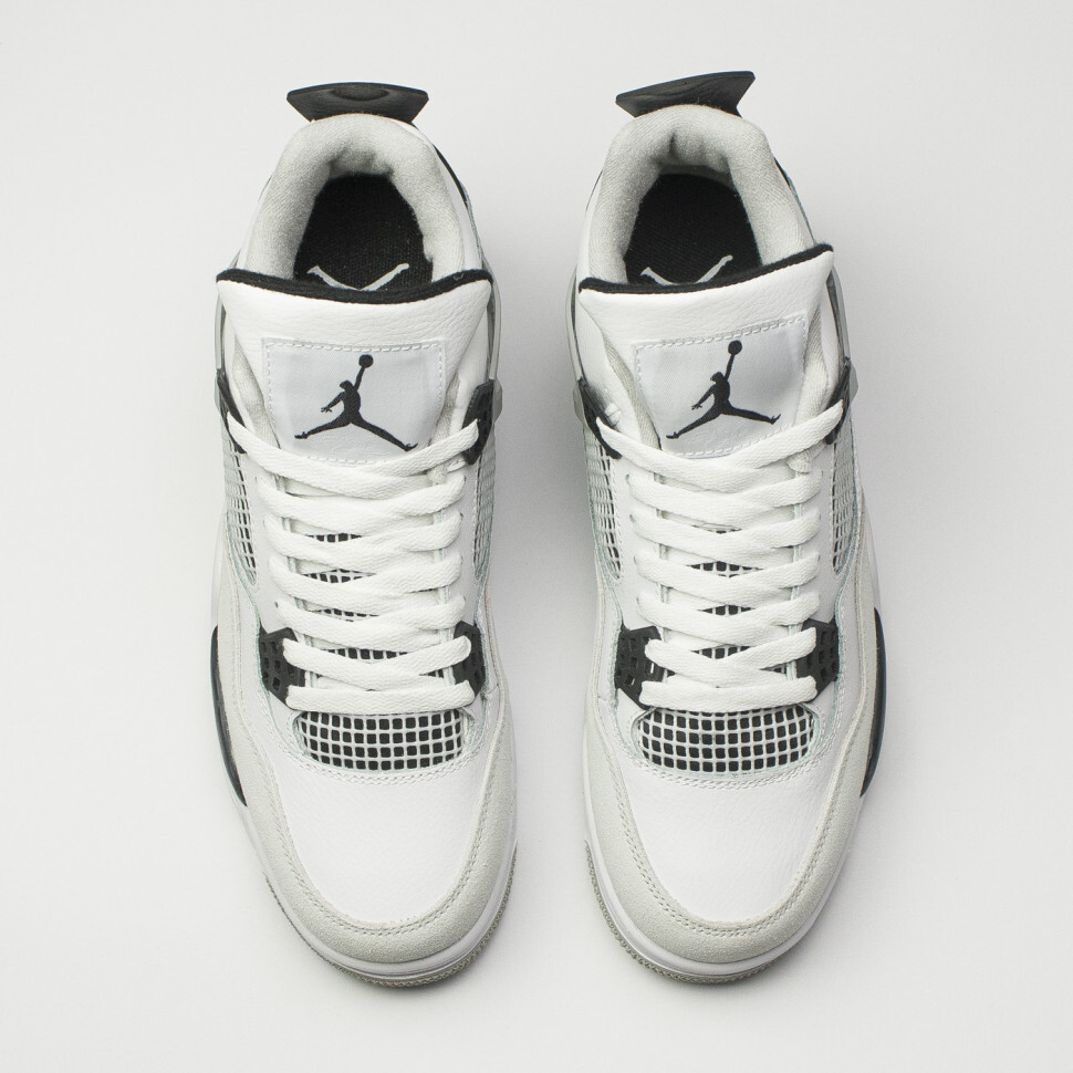 Air Jordan 4 Retro White / Black - четвертые именные кроссовки великого баскетболиста NBA Майкла Джордана. Преимущества модели, это боковая поддержка щиколотки, Air Bag в пятке для повседневного комфорта, высокая износостойкость и конечно же всеми узнаваемый ретро силуэт кроссовок, который не выходит из моды. Верх модели выполнен из иск. кожи, сетки и текстиля.