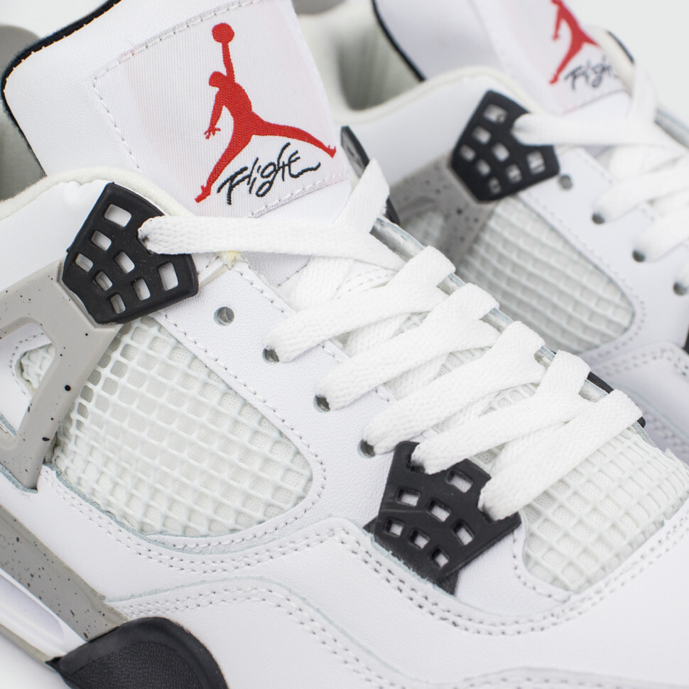 Air Jordan 4 Retro White Cement - четвертые именные кроссовки великого баскетболиста NBA Майкла Джордана. Преимущества модели, это боковая поддержка щиколотки, Air Bag в пятке для повседневного комфорта, высокая износостойкость и конечно же всеми узнаваемый ретро силуэт кроссовок, который не выходит из моды. Верх модели выполнен из иск. кожи, сетки и текстиля.