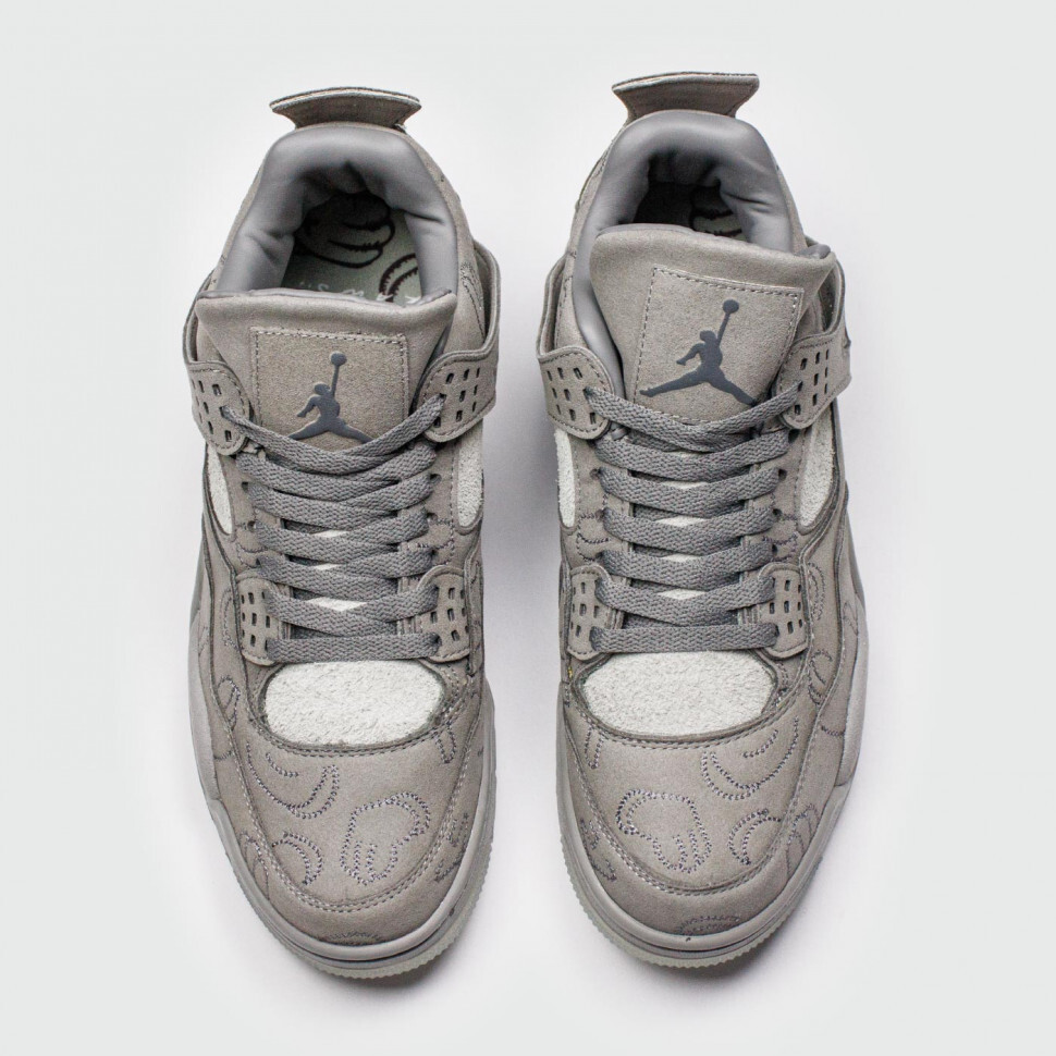 Результат оказался просто ошеломительным! Верхняя часть The KAWS x Air Jordan 4 выполнена из замши серого оттенка с интересными разводами.