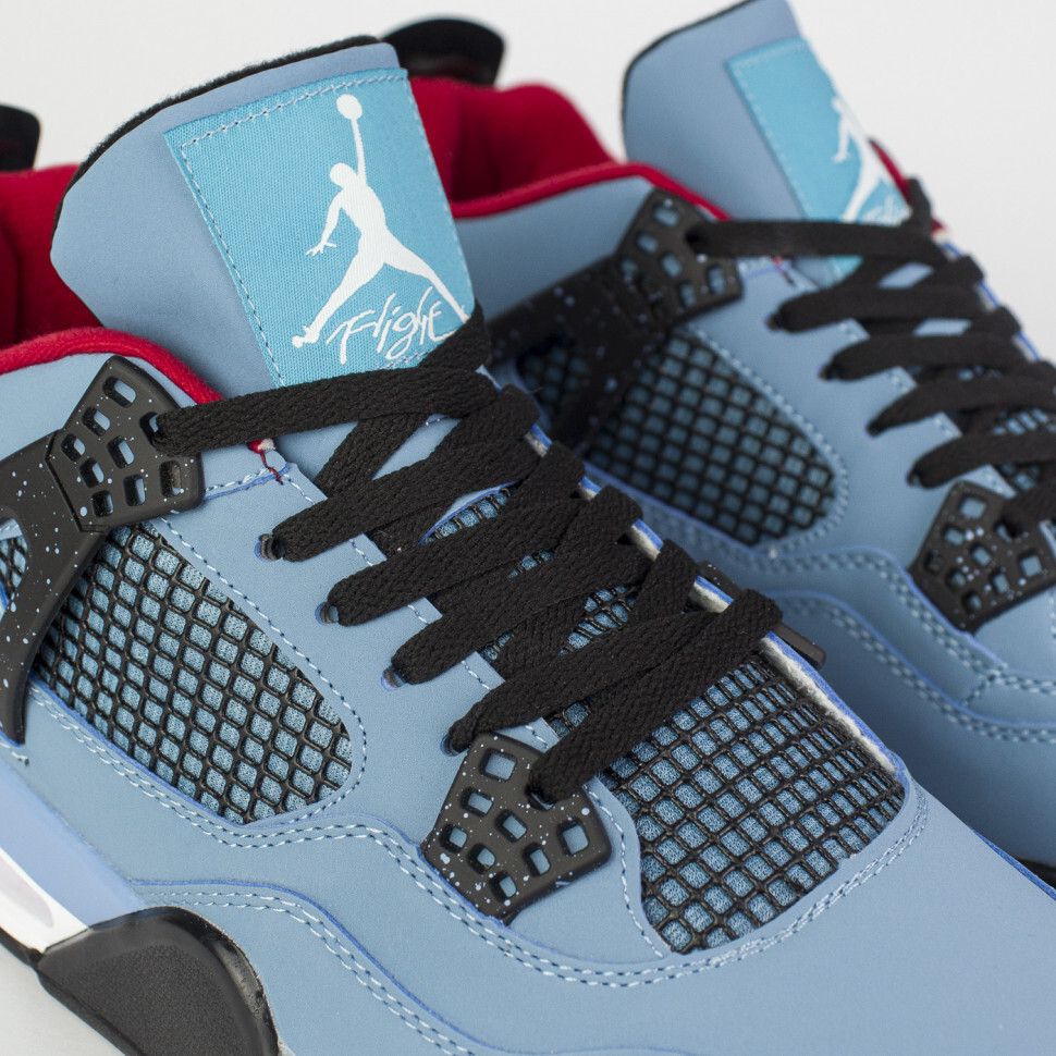 Air Jordan 4 Retro x Travis Scott - четвертые именные кроссовки великого баскетболиста NBA Майкла Джордана. Преимущества модели, это боковая поддержка щиколотки, Air Bag в пятке для повседневного комфорта, высокая износостойкость и конечно же всеми узнаваемый ретро силуэт кроссовок, который не выходит из моды. Верх модели выполнен из иск. кожи, сетки и текстиля.