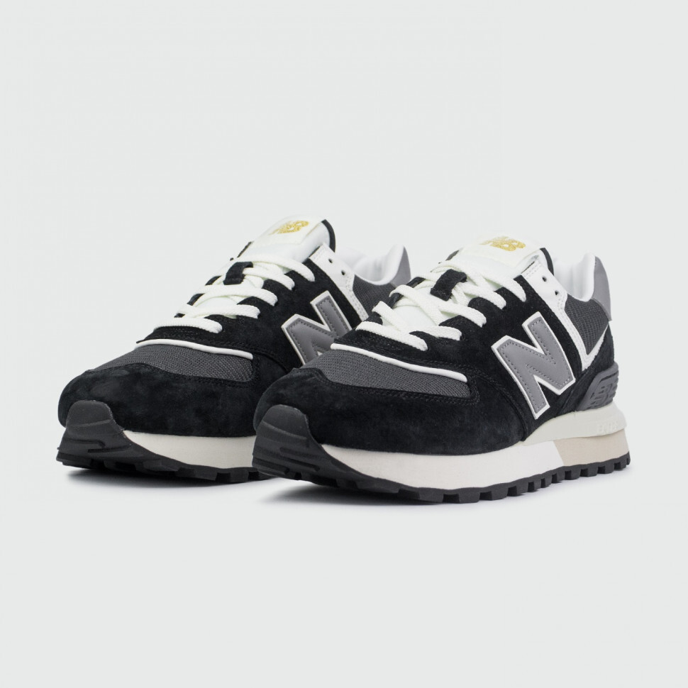 Верх модели выполнен из натуральной замши черного цвета с текстильными элементами сетчатого плетения и дополнен стабилизирующей вставкой в пяточной зоне для наиболее удобной посадки по стопе. Промежуточную подошву EVA, которая в серии модели 574 Legacy становится выше, традиционно дополняет технология ENCAP, которая за счет мягкого сердечника и плотного полиуретанового канта обеспечивает оптимальное соотношение мягкости и стабильности кроссовок.
