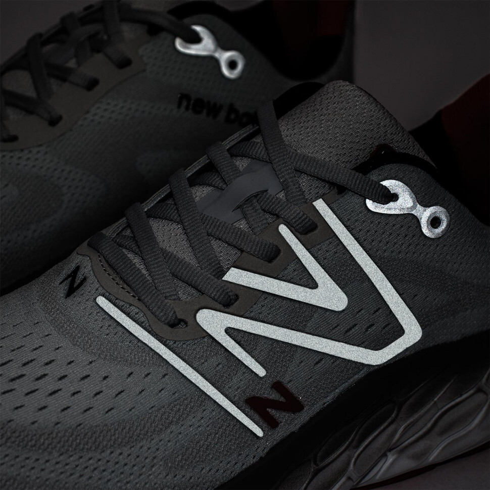 Верх изготовлен из прочной трикотажной сетки, обеспечивающей эффективный воздухообмен. По бокам располагается светоотражающий логотип N, повышающий безопасность в темное время суток. Уплотненный пяточный воротник снижает трение и ударную нагрузку.