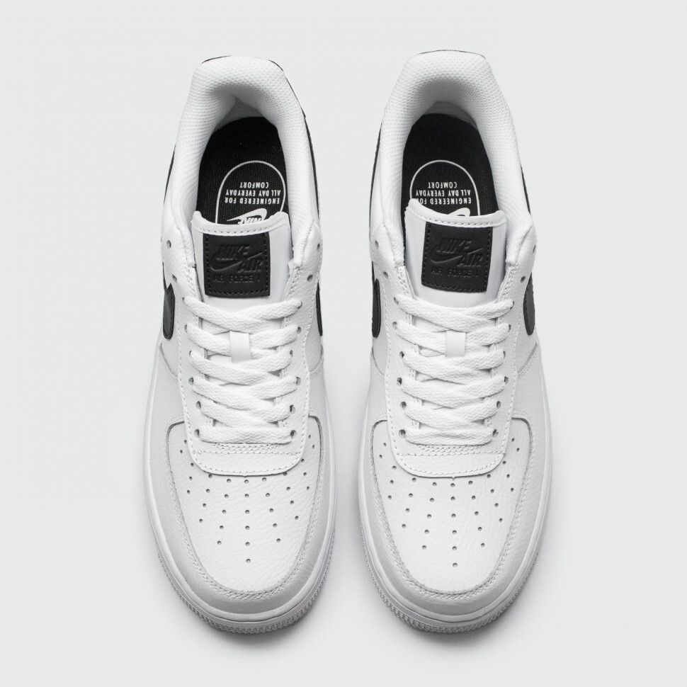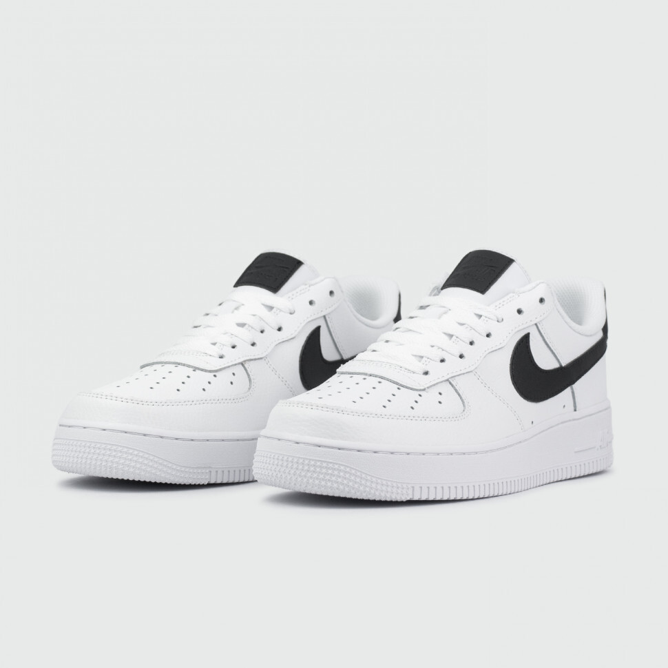 Кроссовки Nike Air Force 1 Low белые с черным Swoosh женские - это обновленная версия классической баскетбольной модели адаптированная для улицы. Свежие идеи в традиционном исполнении.