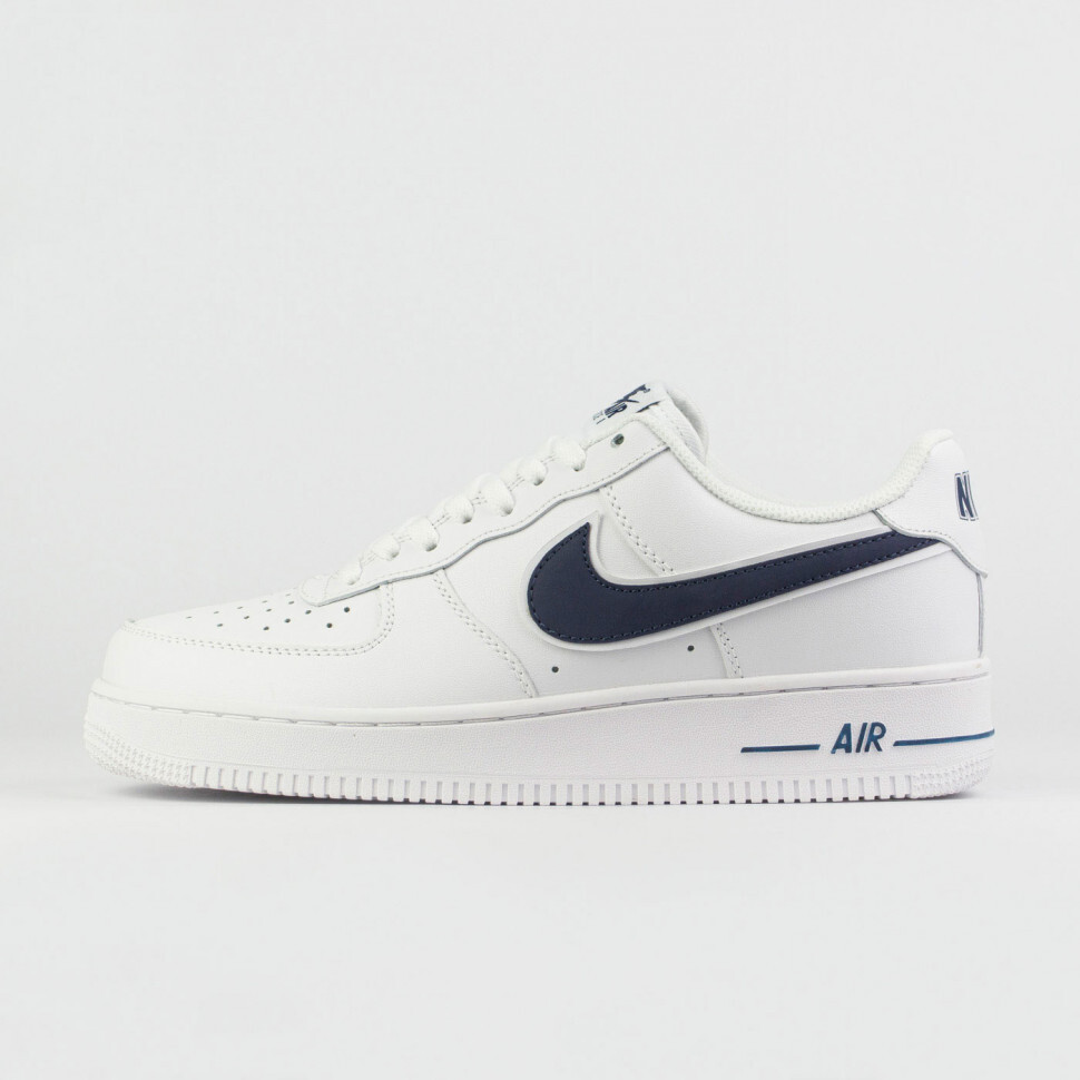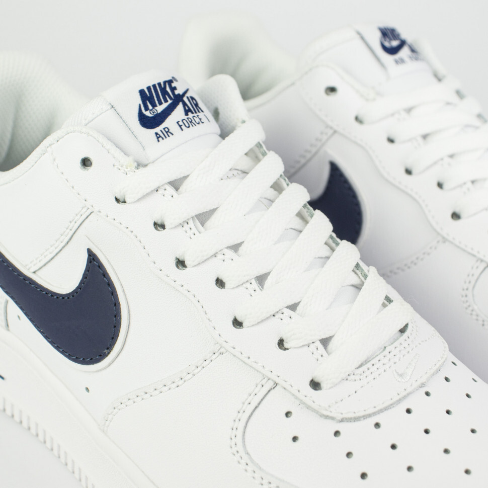 Кроссовки Nike Air Force 1 Low белые с синим Swoosh - это обновленная версия классической баскетбольной модели адаптированная для улицы. Свежие идеи в традиционном исполнении.