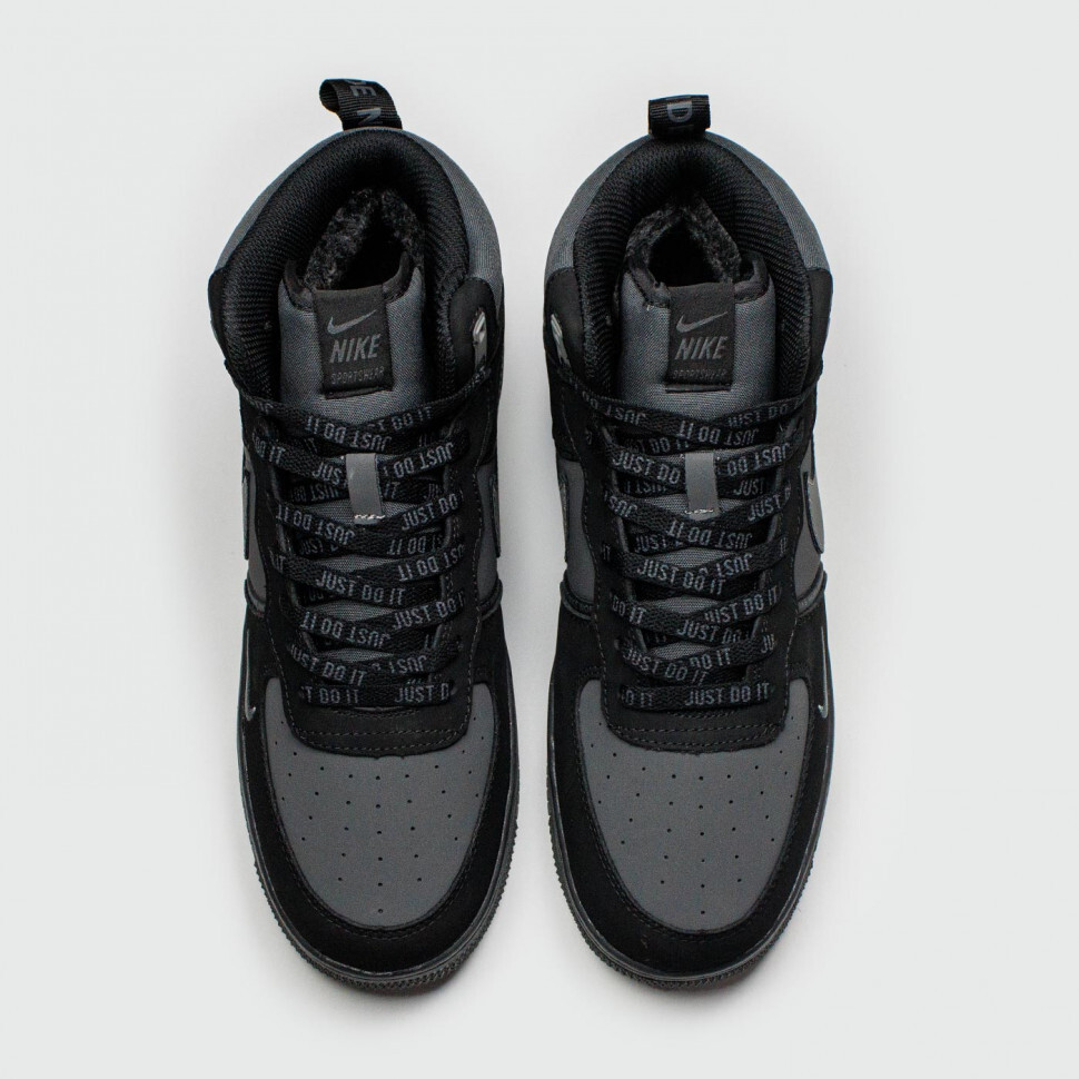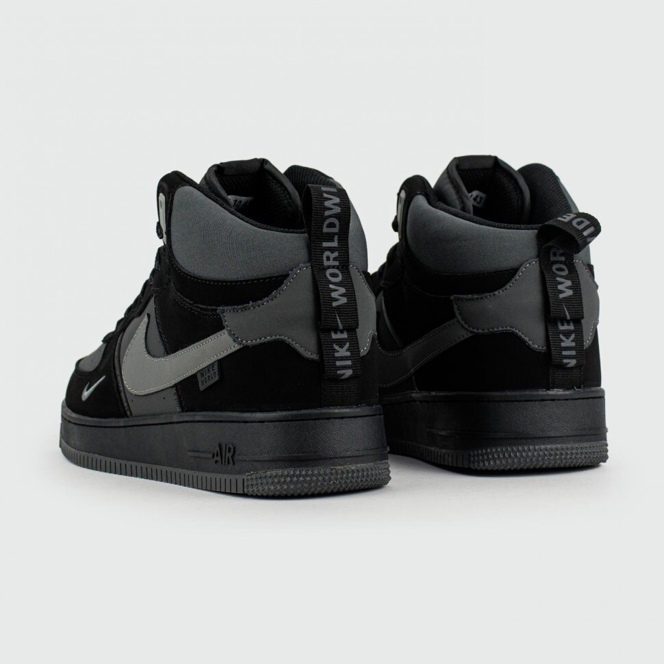 Air Force 1 Mid Black / Grey — стильные зимние кроссовки с утеплением и технологией Air для амортизации в любую погоду. Высокие кроссовки Air Force 1 сделаны из комбинации нескольких материалов: иск кожи и текстиля. Дизайн AF1 сочетает несколько записей для украшения. Внутренняя часть зимней обуви – это утеплитель в виде меха. Сзади находится петелька, чтобы можно было удобно обуваться. Подошва AF1 состоит из износостойкой резины, а внутри нее – технология Air.