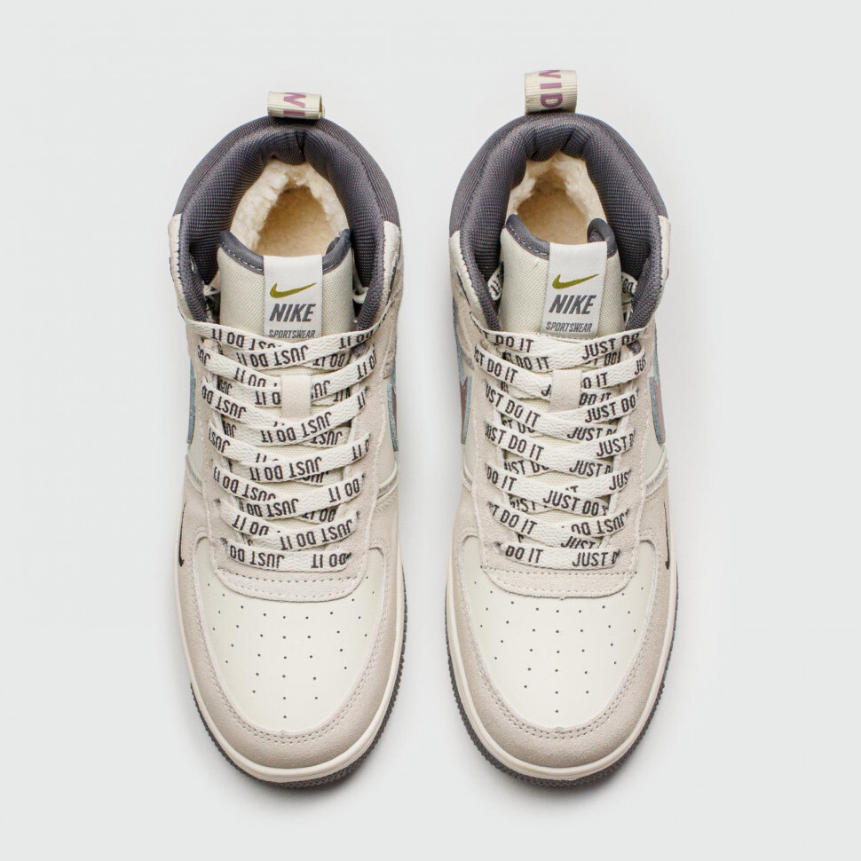 Air Force 1 Mid Grey / White / Purple Wmns — стильные зимние кроссовки с утеплением и технологией Air для амортизации в любую погоду. Высокие кроссовки Air Force 1 сделаны из комбинации нескольких материалов: замши, текстиля, кожи и нубука. Дизайн AF1 сочетает несколько записей для украшения. Внутренняя часть зимней обуви – это утеплитель в виде меха. Сзади находится петелька, чтобы можно было удобно обуваться. Подошва AF1 состоит из износостойкой резины, а внутри нее – технология Air.