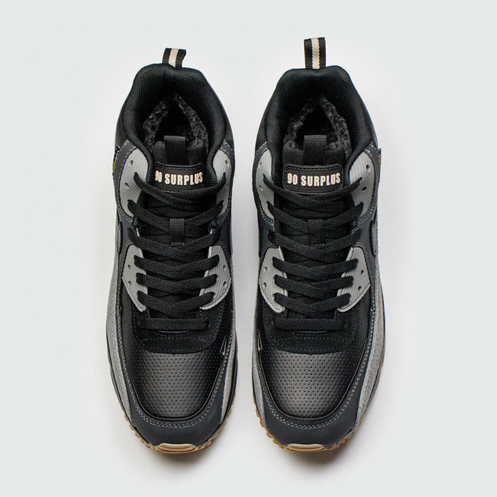 Кроссовки Nike Air Max 90 Mid Black / Grey Winter с мехом.