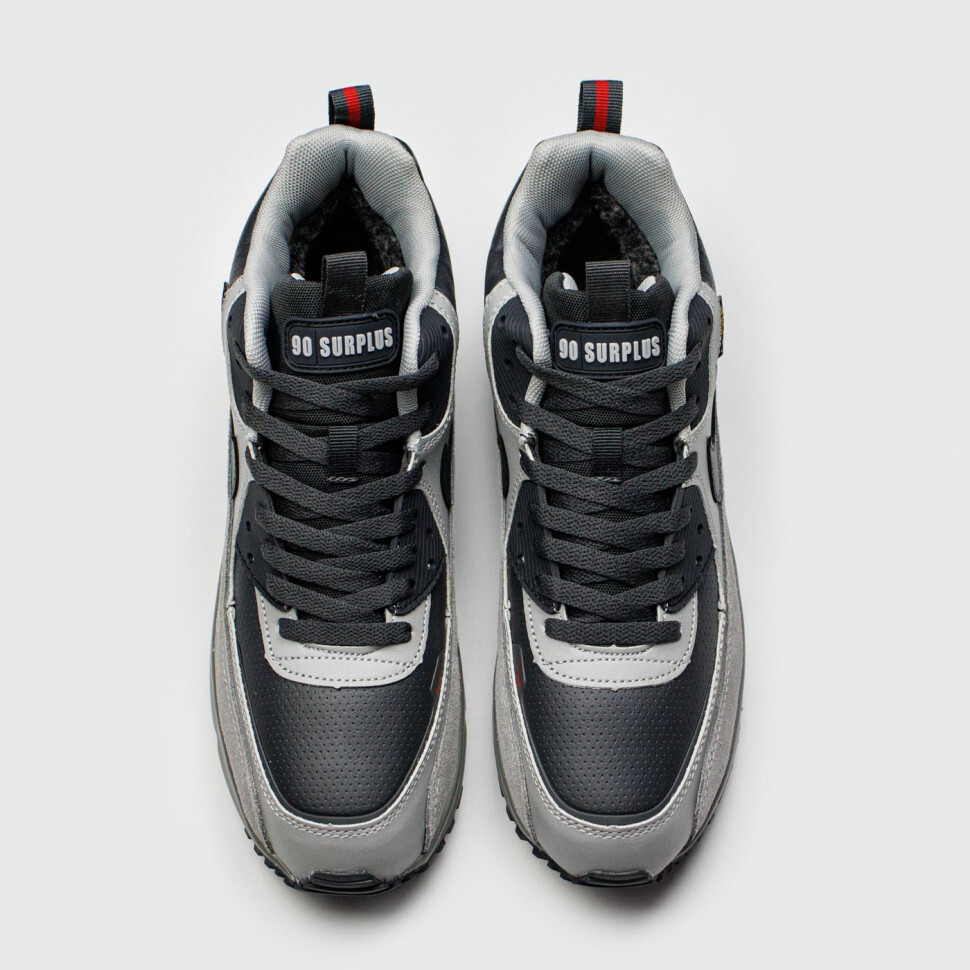 Кроссовки Nike Air Max 90 Mid Grey / Black Winter с мехом.