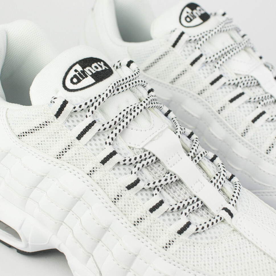 Air Max 95 белого цвета — модель кроссовок от Nike, выпущенная в 1995 году по дизайну Серджио Лозано. Для дизайнера это был первый проект спортивной беговой обуви, и он отлично удался. Вдохновившись строением человеческого тела, Серджио Лозано придумал подошву, напоминающую позвоночник, шнуровку, вдохновлённую грудной клеткой и рёбрами, а так же многослойный верх, отсылающий к мышечному корсету тела.
