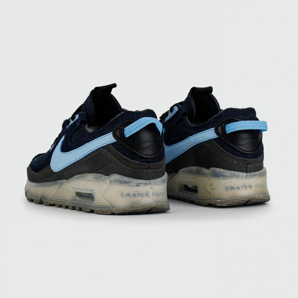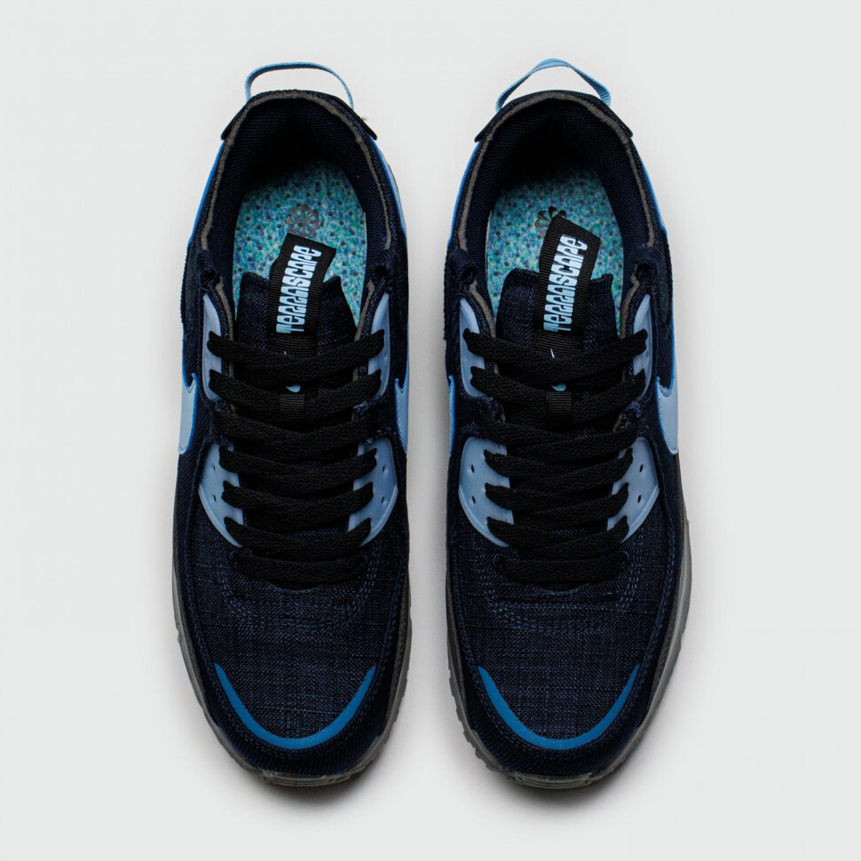 Вдохновлённые силуэтом Air Max 90 кроссовки выполнены с идентичным силуэтом, но из нестандартных для модели материалов. Промежуточная подошва у Air Max Terrascape 90 выполнена из пеноматериала Crater Foam, что делает кроссовки ещё мягче.