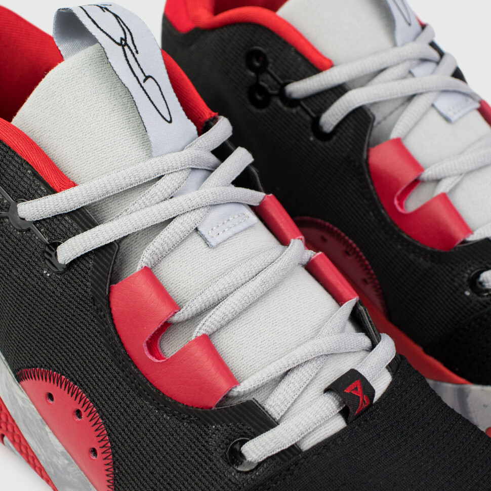 Традиционно для этой серии кроссовки PG 6 Bred имеют низкий силуэт. Базовая расцветка включает сочетания черного и красного цветов. Минималистичный верх выполнен из сетчатого материала с усиленным мыском и несколькими полукруглыми накладками. На боковой стороне ближе к задней части нанесли обратный свуш, а на язычке автограф Пола.