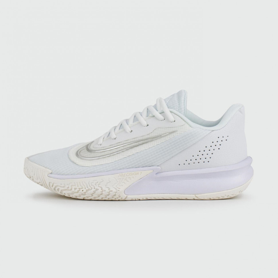 Кроссовки Nike Precision 7 созданы, чтобы чувствовать себя максимально уверенно на баскетбольной площадке. Мягкая область щиколотки и язычок создают дополнительную мягкость при резких движениях. Шнуровка с разнонаправленными люверсами обеспечивает плотную посадку по стопе. Подошва из пенного материала Nike Renew хорошо пружинит и защищает суставы от ударов. Подметка изготовлена из резины и дополнена мелким протектором-елочкой, который отвечает за надежное сцепление во время игры.