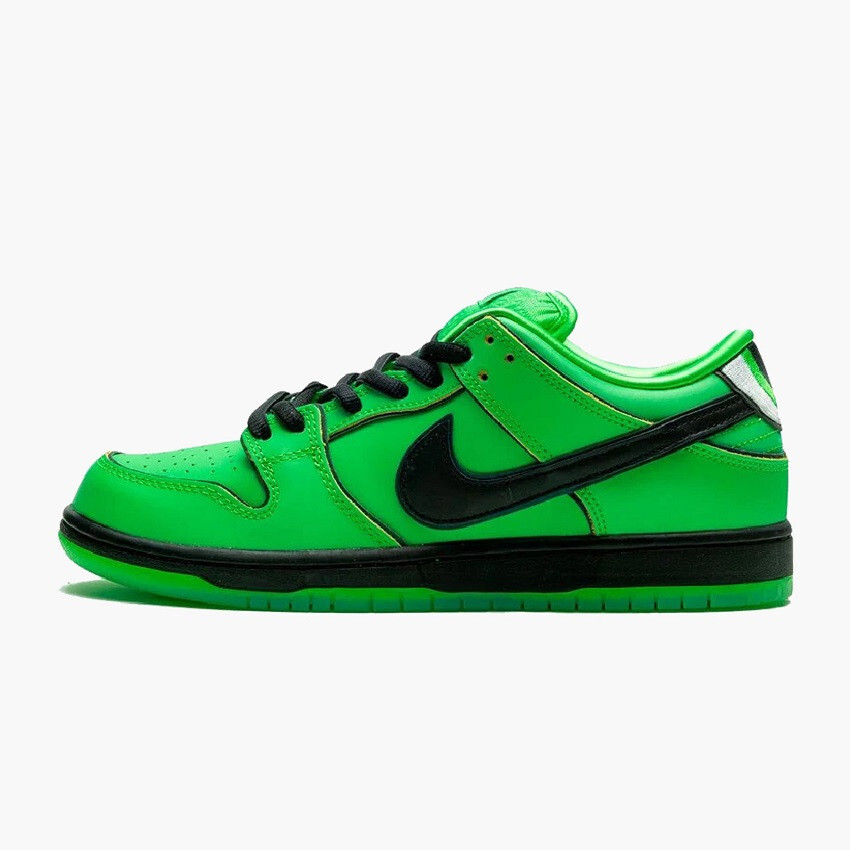 Nike SB Dunk Low "Powerpuff Girls Buttercup" - кроссовки, которые точно привлекут к себе внимание. Увеличенные глаза — визитная карточка коллекции — украшают язычки на пятке. Стельки украшены яркими воздушными шарами с речью и озорным Моджо Джоджо. Верх зеленого цвета имеет гладкую атласную отделку с резкими черными акцентами на межподошве, веревочными шнурками и логотипами Swoosh.