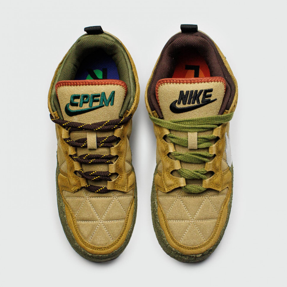 Кроссовки с «грязью» появились благодаря коллаборации «Найк» и бренда уличной одежды Cactus Plant Flea Market (CPFM). Компания с необычно длинным названием «Блошиный рынок кактусовых растений» создает ироничные вещи и одежду, которая поднимает важные проблемы. В качестве своего логотипа бренд использует четырехглазый смайлик и философский знак Инь и Ян. Именно их можно встретить в разных расцветках CPFM x Nike Dunk Low.