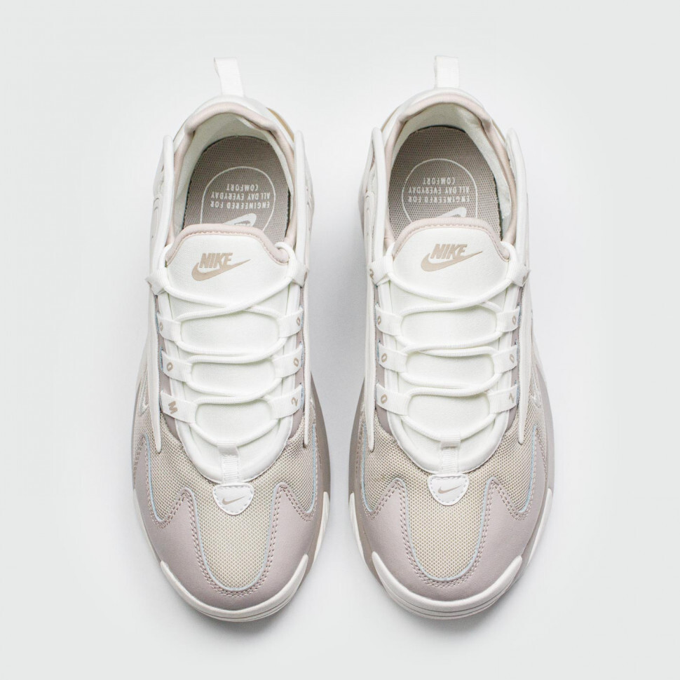 Дизайн кроссовок Nike Zoom 2K вдохновлен стилем конца 90-х годов, в частности моделями из проекта Nike Alpha. Кроссовки объединяют классический стиль с амортизирующей вставкой Zoom Air для комфорта на современном уровне. Сочетание материалов верха подчеркивают резиновые крылья подметки, обхватывающие стопу с обеих сторон и создающие эффектный образ на грани ретро и футуристического стиля.
