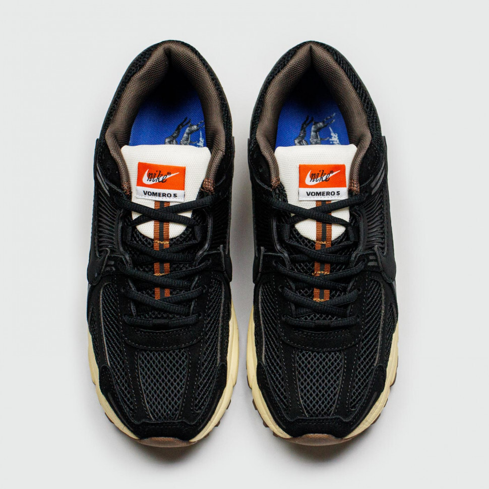 Кроссовки от бренда Nike модели Zoom Vomero 5 Black / Gum. Лёгкие кроссовки с верхом из синтетических материалов с перфорацией и укрепляющими вставками, отличаются неплохой прочностью и повышенным комфортом. Модель серии "Bowerman", отсылает нас к соучредителю Nike и тренеру Биллу Бауэрману.