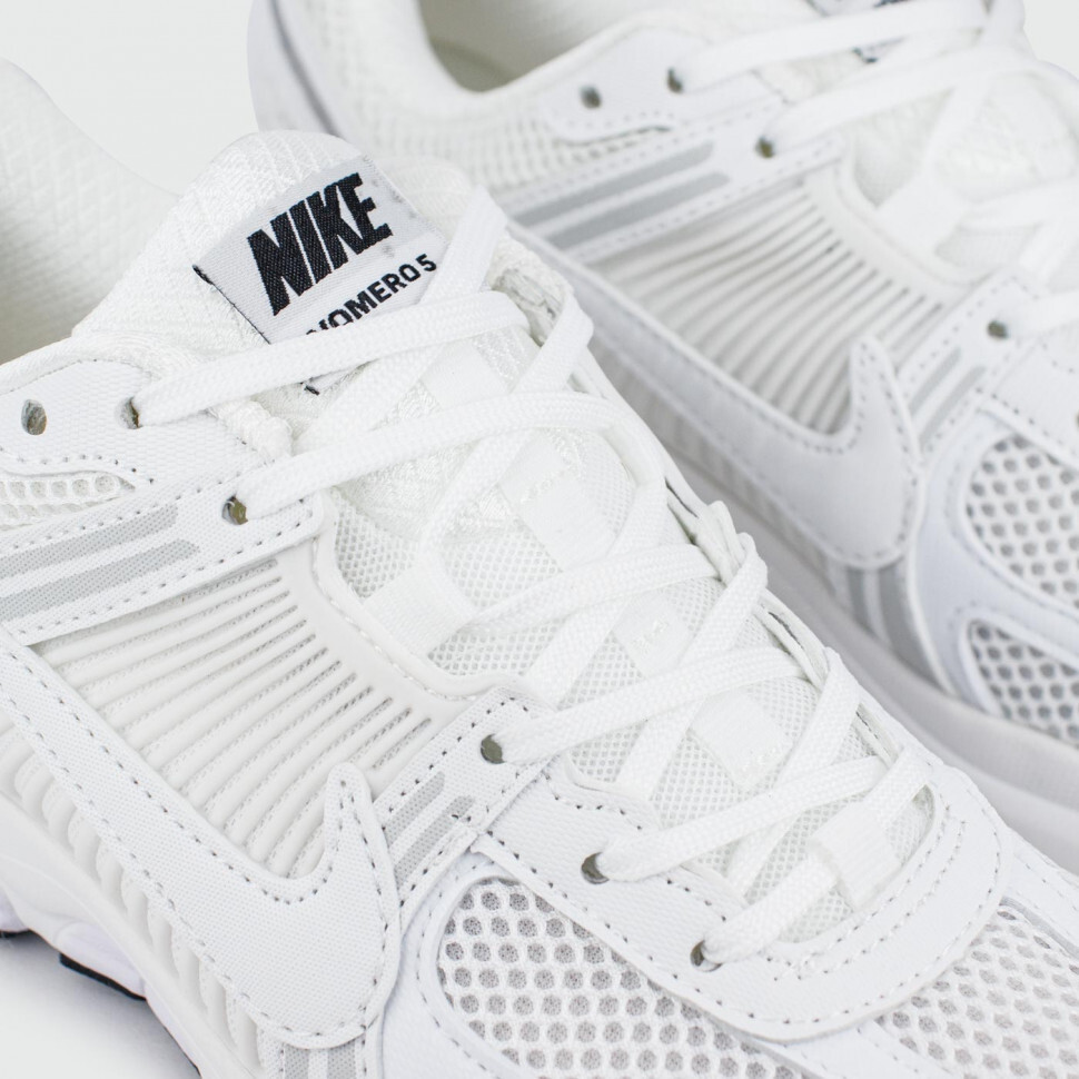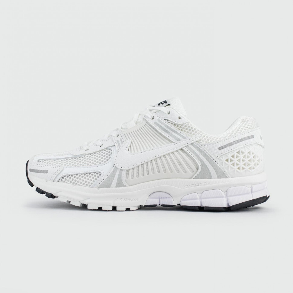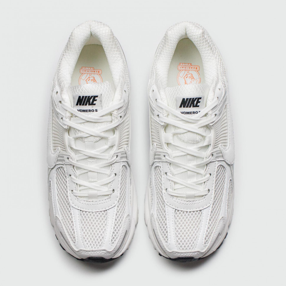 Кроссовки от бренда Nike модели Zoom Vomero 5 белого цвета. Лёгкие кроссовки с верхом из синтетических материалов с перфорацией и укрепляющими вставками, отличаются неплохой прочностью и повышенным комфортом. Модель серии "Bowerman", отсылает нас к соучредителю Nike и тренеру Биллу Бауэрману.