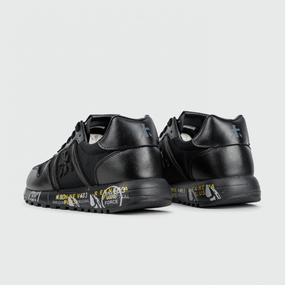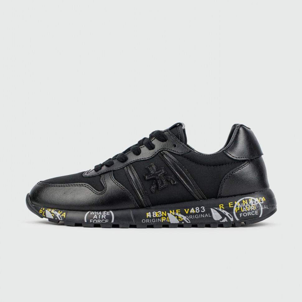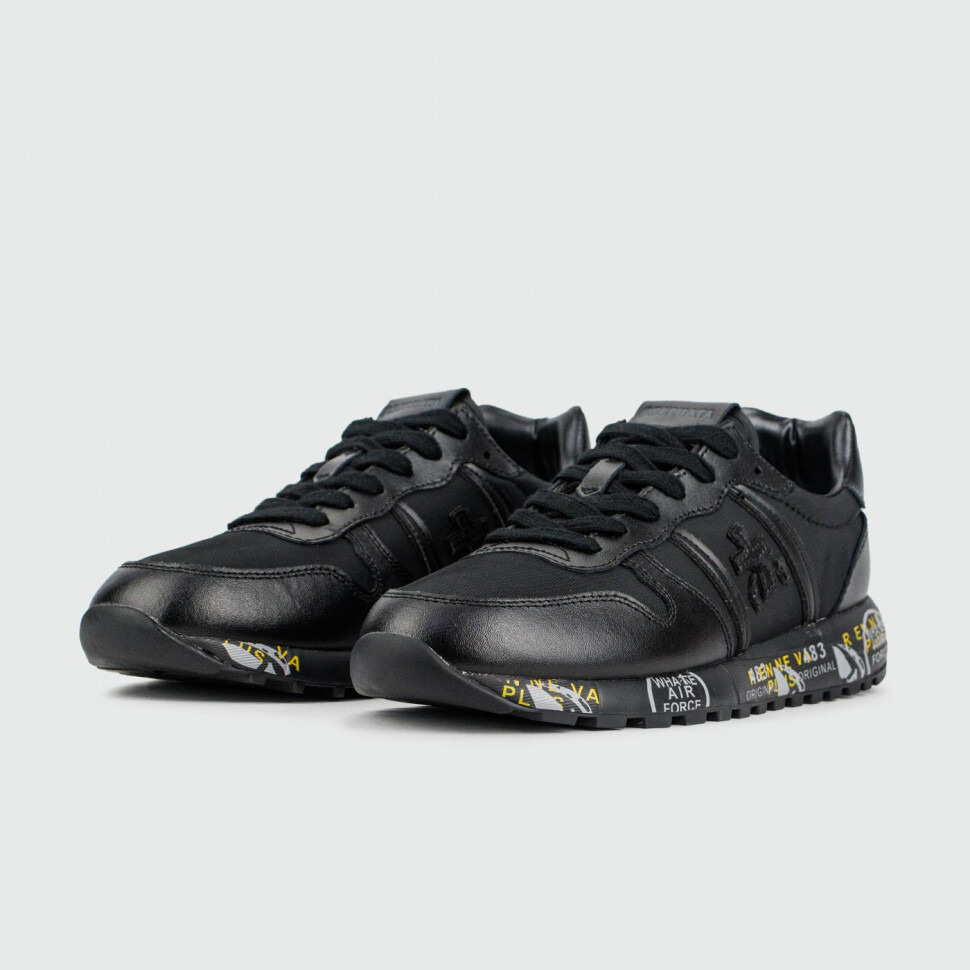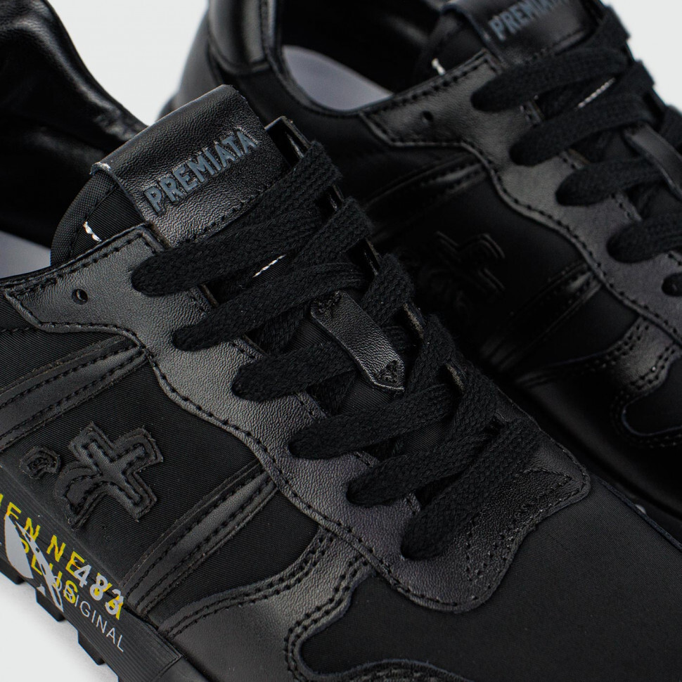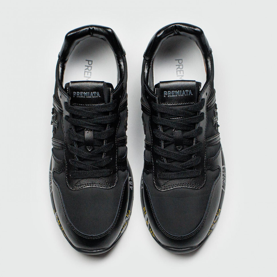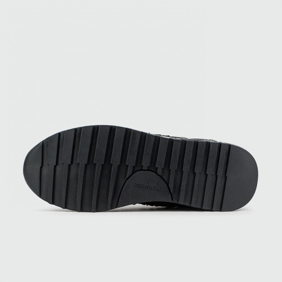 Кроссовки от Premiata созданы специально для динамичных летних образов. Верх выполнен из черной иск. кожи и плотной текстильной ткани.