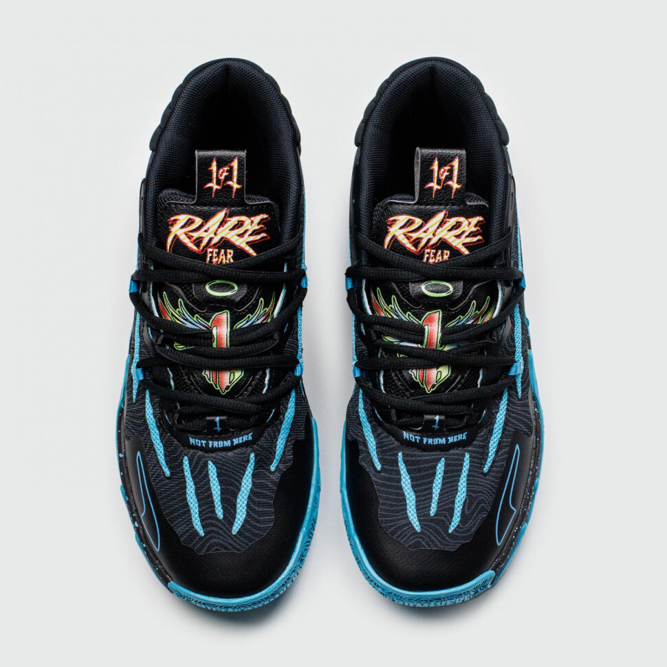 Верх Puma MB.03 многослойный. Прочный текстиль в базе и сетчатый слой под ним, а также защитные накладки из TPU, для комфорта, поддержки и хорошей вентиляции. Пяточная область из формованного неопрена обеспечивает большую подвижность и безопасность одновременно, за счет прочной стойки внутри. За амортизацию здесь отвечает уже полюбившаяся многим пена Nitro, а необычный рисунок протектора - гарант отличного сцепления. И самое примечательное, это конечно же инопланетные детали: царапины от когтей на корпусе, подошва затекающая на мидсоль в виде слизи.