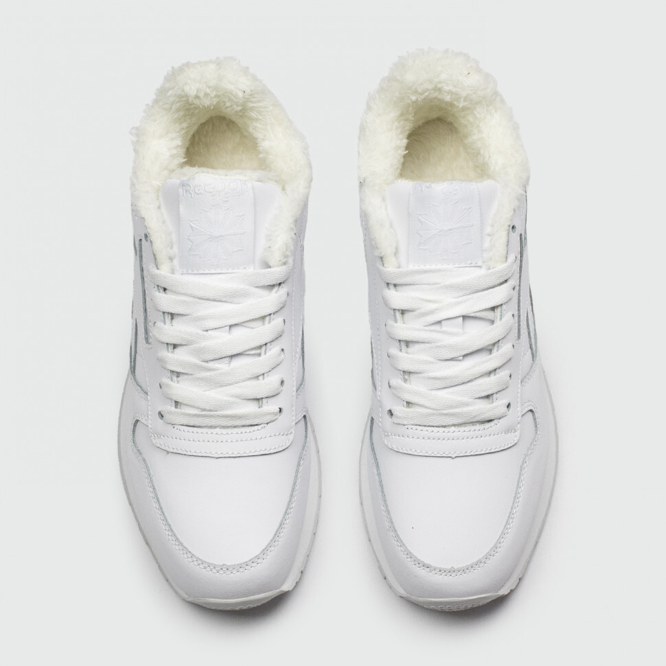 Зимние кроссовки Reebok Classic Leather Triple White Winter с мехом.